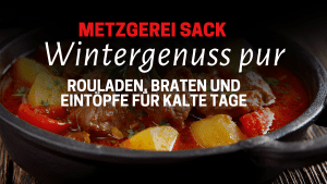 Wenn draußen der Frost klirrt und sich der Nebel übers Land legt, gibt es drinnen kaum etwas Schöneres als einen Teller mit dampfendem Eintopf oder einen zarten Braten aus dem Ofen. Jetzt ist genau die richtige Zeit für ehrliche, hausgemachte Küche – kräftig im Geschmack, sättigend und einfach wohltuend. Und genau das bekommt ihr bei uns: Winterklassiker aus eurer Metzgerei Sack.
